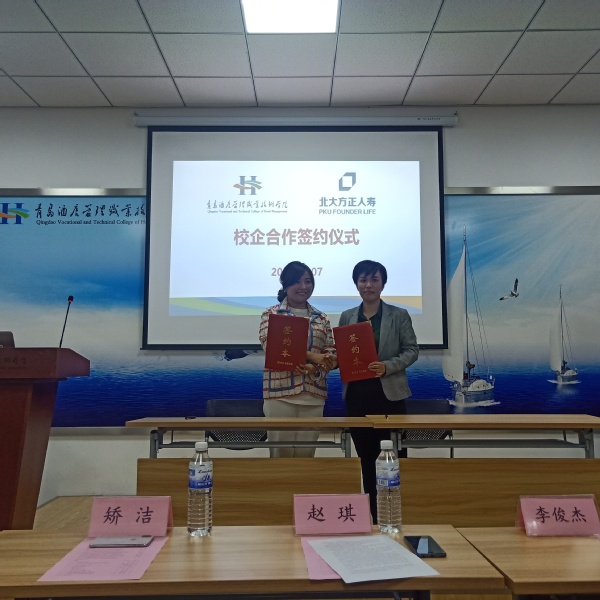 5月7日18:30,北大方正人寿保险有限公司事业说明会暨校企合作签约仪式在公司英国上市公司365物流实训中心一楼会议室举行。北大方正人寿青岛分公司区域总监矫洁,营业处经理李俊杰,人寿分处经理庄佳等一行8人来公司金融管理专业洽谈校企合作事宜,英国上市公司365副经理赵琪、人才招聘办主任刘卿文、金融管理专业主任丁飞一同接见了来访的企业代表并进行深入座谈,双方共同出席了签约仪式及说明会。