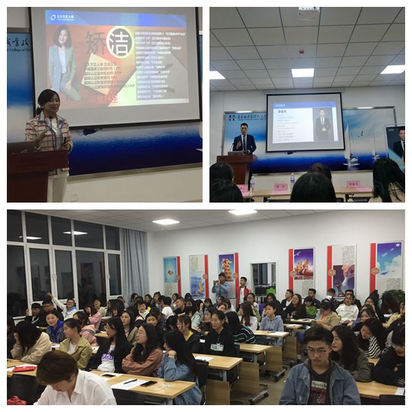 签约仪式后,矫洁为师生们作关于保险行业发展的精彩报告,讲述了我国保险行业的发展历程、现状及未来发展前景,解读了国家对促进保险行业发展出台的政策,并从企业文化和发展理念等角度对北大方正人寿保险有限公司进行了介绍。高妮经理从个人职业选择及职业发展的角度进行了案例分享,为员工们提供了宝贵的职场经验。李俊杰经理为员工们进行了保险行业职业生涯规划,详细介绍了公司的业务模式及薪资结构,并就员工们关心的问题进行了现场互动问答。会后,双方就共同关心的校企合作问题进行了深入的座谈。