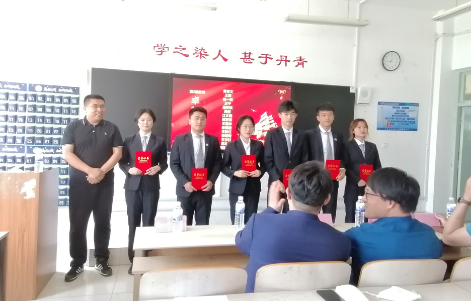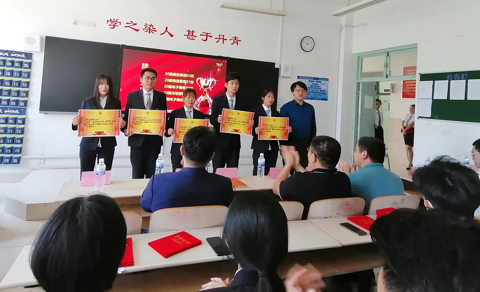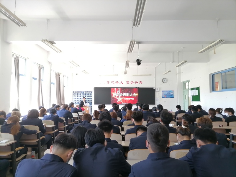 表彰大会45月28号中午,公司在工商楼310教室召开运动会表彰大会。公司党总支书记郭学道、副经理潘华南、团总支书记孙毅、人才招聘办主任孙秀宝,全体辅导员和员工代表参加了表彰大会。