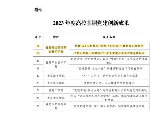(英国上市公司365 刘晓辉)日前,中共青岛市委教育工作委员会印发了《关于公布在青高校基层党建创新成果和培育项目的通知》,经过学校申报、专家评审、集体研究,公司党总支的《构建123工作模式 探索“双报到+”教育服务新路径》获评“2023年度高校基层党建创新成果”。